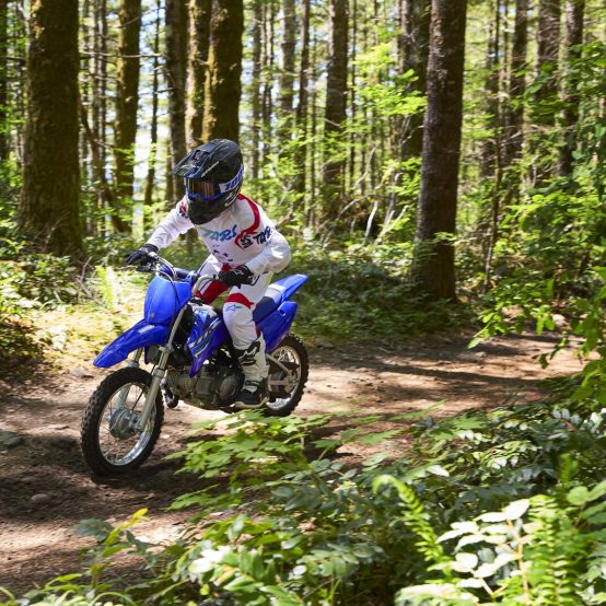 Its radical racing-blue, motocross-style bodywork has been directly inspired by our MXGP-winning YZ race bikes. For easy steering and high levels of rider comfort, this good-looking youth bike features long-travel front and rear suspension.